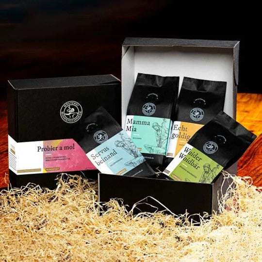 Neu im Angebot haben wir jetzt zwei Probierpakete mit jeweils 4 ausgewählten Kaffees à 250g. So könnt ihr unsere Kaffeesorten einfach mal ausprobieren! Unsere Probierpakete eignen sich aber auch bestens als Mitbringsel, als Geschenk für Weihnachten oder schnelles Give-away. Oder ihr macht mit Freunden einfach eure Privat-Verkostung. Findet euren Lieblings-Kaffee!